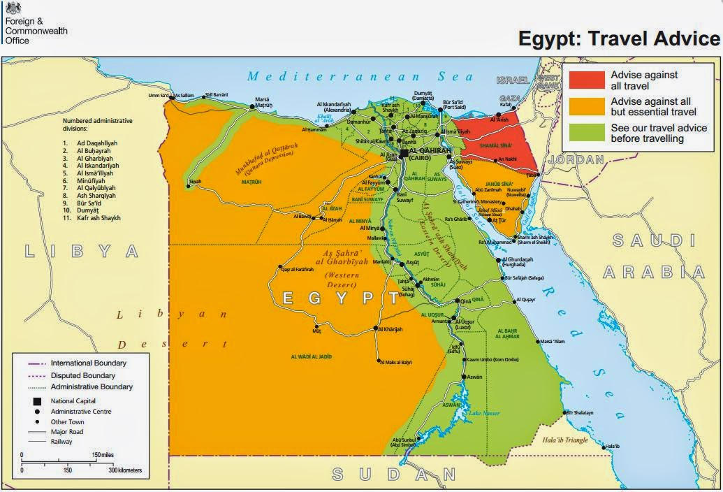 There is an increase of terrorist attacks in Egypt according to Foreign and Commonweath Office. Areas to avoid in Egypt because of terrorist threat are the Governate of North Sinai, the Governorate of South Sinai and also the west side of the Nile Valley and Delta Regions. Take care near official or government buildings. Yet, tourist areas like Red Sea resorts or Giza are safe.